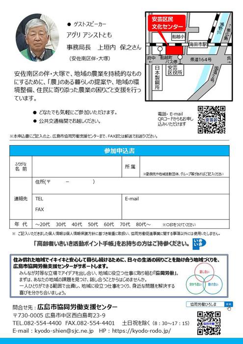 広島市協同労働支援センター TEL 082-554-4400 FAX 082-554-4401 E-mail kyodo-shien@sjc.ne.jp