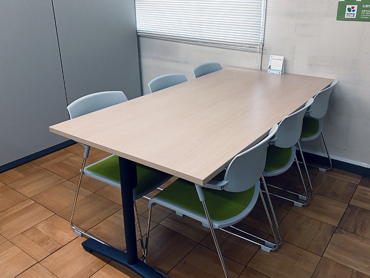 広島市協同労働支援センター内のコミュニテイスペースや会議室(要予約)を、協同労働団体の話し合いの場としてご利用いただけます。